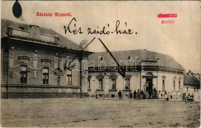 1909 Miske (Kalocsa), Fő utca és Szent Imre utca sarka, ház, áruház, ü...