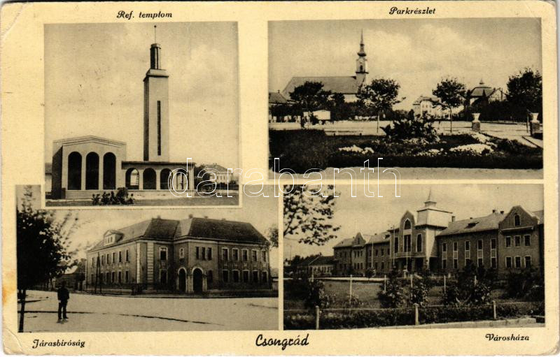 1941 Csongrád, Református templom, park, Járásbíróság, Városháza. Végh...