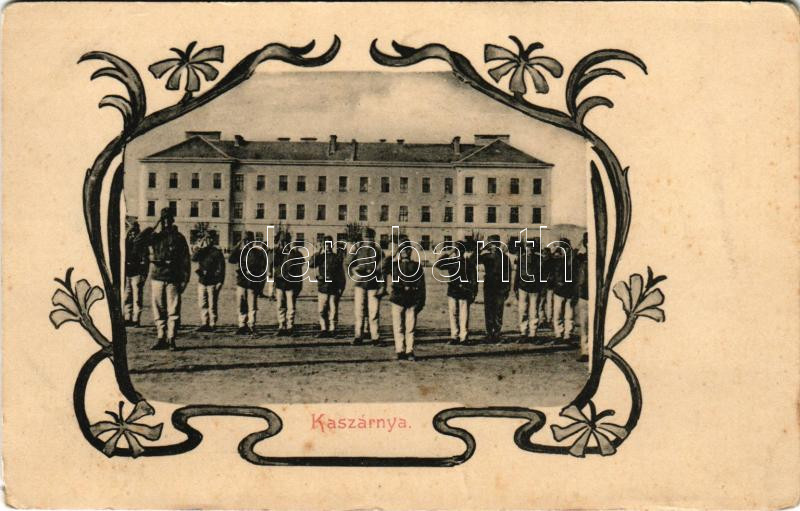 Eger, Kaszárnya katonákkal. Art Nouveau, floral (apró szakadás / tiny tear)