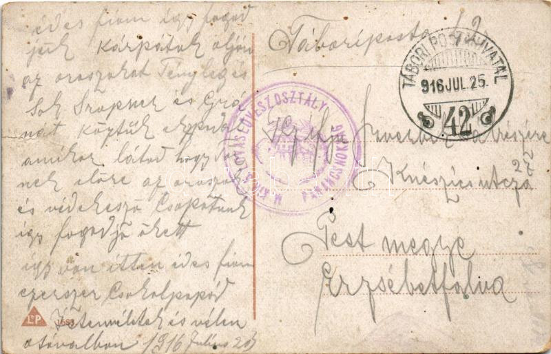 Description: 1916 Kämpfe gegen die Russen in den Karpathen / első világháborús katonai művészlap, ütközet az oroszokkal. L&P 1683. / WWI Austro-Hungarian K.u.K. military art postcard, battles against the Russians in the Carpathian Mountains + "Tábori postahivatal 42" + "M. Kir. 5. Lovas Lövész Osztály Parancsnokság" (fa)