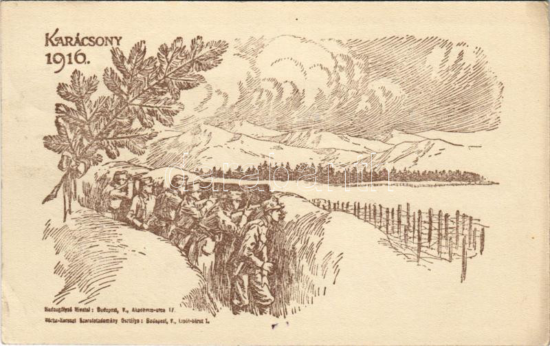1916 Karácsony 1916. Hadsegélyező Hivatal Vörös Kereszt Szeretetadomán...