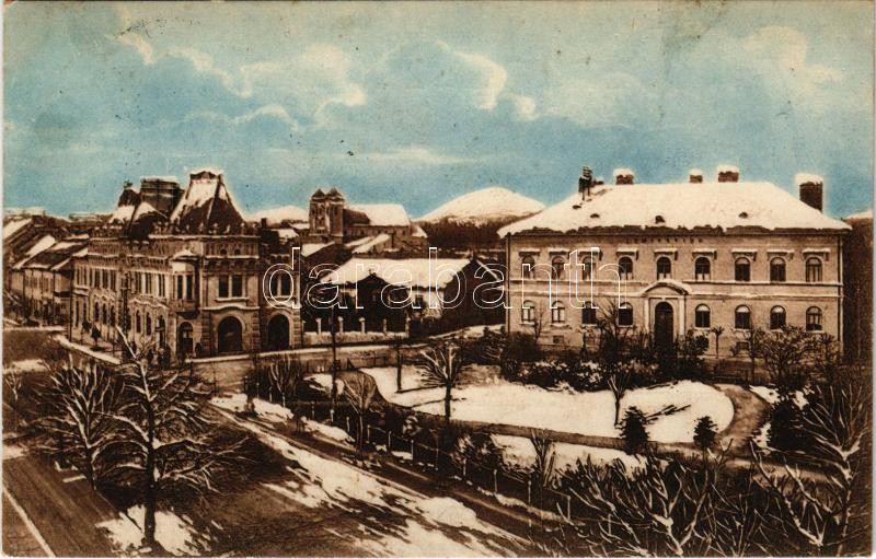 1912 Eperjes, Presov; Postapalota, Görög katolikus papnevelő intézet télen. Kiadja Divald Károly fia / post office, Greek Catholic seminary at winter