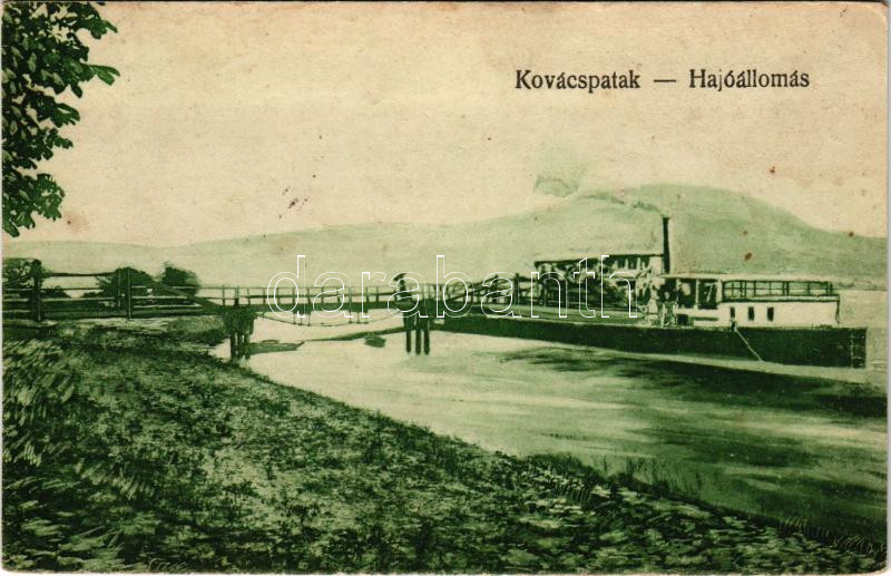 1922 Kovácspatak, Kovacov; Hajóállomás, gőzhajó. Kovácspataki dohánytő...