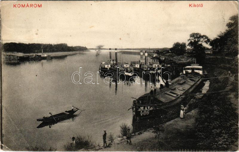 Komárom, Komárno; kikötő, gőzhajók, MÁV 406-os uszály. L. H. K. 36. / ...