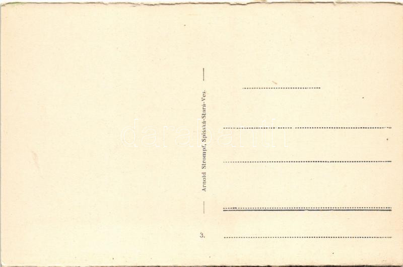 Description: Vöröskolostor, Cerveny Klástor (Alsólehnic, Pod Lechnica); Cerveny klastor s tri korunama / Rothkloster mit dem Drei-Kronen-Berg / Vörös Klastrom és Koronahegy. Josef Strompf kiadása / monastery, Tri Koruny mountain