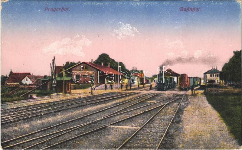 1918 Pragersko, Pragerhof; Bahnhof / railway station, train, locomotive. Verlag Amalie Churfürst (EK)