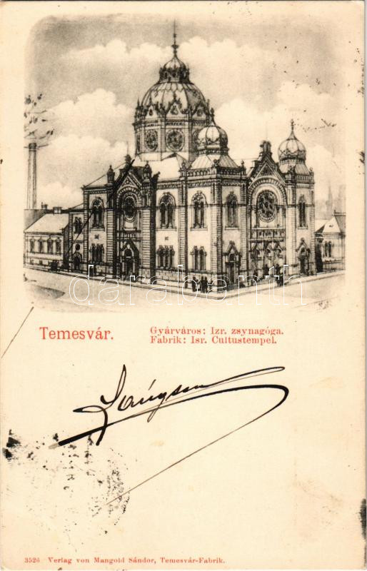https://www.darabanth.com/en/500-Online-auction/500.0/Postcards/Transylvania~2500006/1899-Vorlaufer-Temesvar-Timisoara-Gyarvaros-izraelita-zsinagoga-Mangold-Sandor-kiadasa-~II3405143