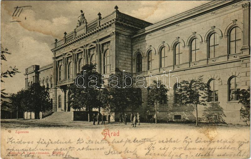 1901 Arad, Lyceum. Römmler & Jonas (Dresden) / school (ázott sarok / wet corner)