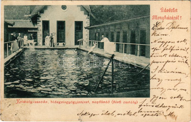 1901 Menyháza, Monyásza, Moneasa; Kristály uszoda, hidegvízgyógyintézet és napfürdő (férfi osztály), fodrász terem / spa, swimming pool, sunbathing, hairdresser (fl)