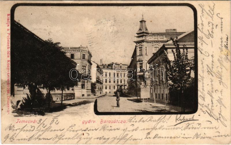 1902 Temesvár, Timisoara; Gyárváros, Baross utca. Polatsek-féle könyvkereskedés kiadása / street (gyűrődés / crease)