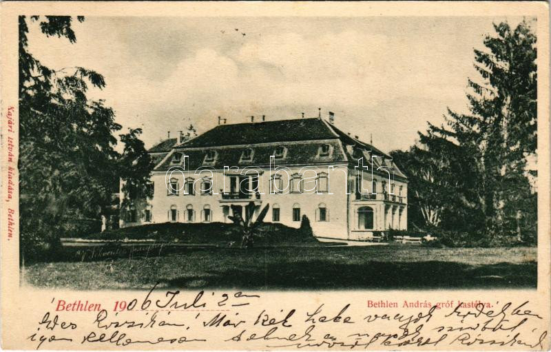 https://www.darabanth.com/en/500-Online-auction/500.0/Postcards/Transylvania~2500006/1906-Bethlen-Betlen-Beclean-Bethlen-Andras-grof-kastelya-Kajari-Istvan-kiadasa-castle~II3410436