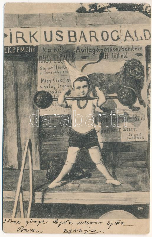 1907 Kolozsvár, Cluj; Circus Barogald, súlyemelő / weight-lifter boy (...