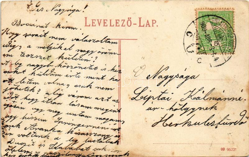 1909 Máriaradna, Mária-Radna, Radna (Lippa, Lipova); Solymosi várrom, templom, főoltár, belső. Rauch Sándor kiadása / Ruine Solymos, Kirche, Hauptaltar / Soimos castle ruins, pilgrimage church, altair, interior + "GYULAFEHÉRVÁR - BUDAPEST 6. C" vasúti mozgóposta bélyegző (fl)