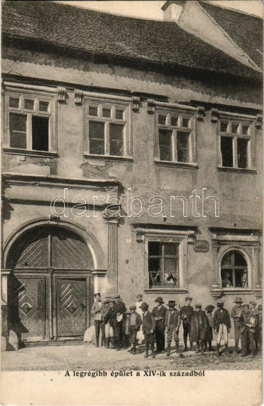 1913 Beszterce, Bistritz, Bistrita; A legrégibb épület a XIV. századbó... https://www.darabanth.com/en/500-Online-auction/500.0/Postcards/Transylvania~2500006/1913-Beszterce-Bistritz-Bistrita-A-legregibb-epulet-a-XIV-szazadbol-J-K-Wasta-ferfi-szabo~II3409864