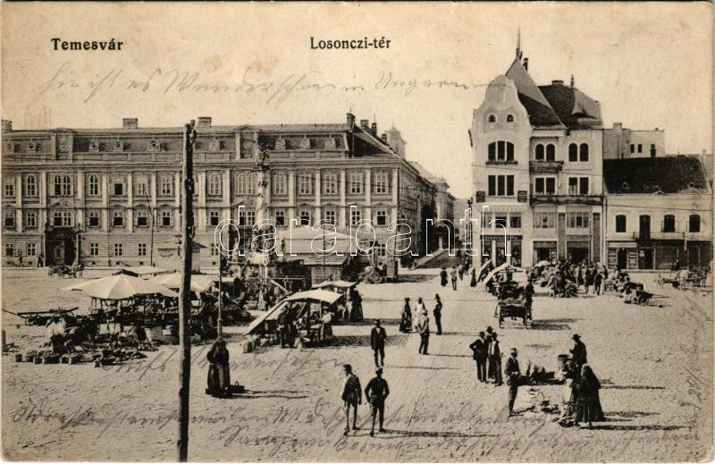 1915 Temesvár, Timisoara; Losonczi tér, gyógyszertár, üzletek, piac / ...