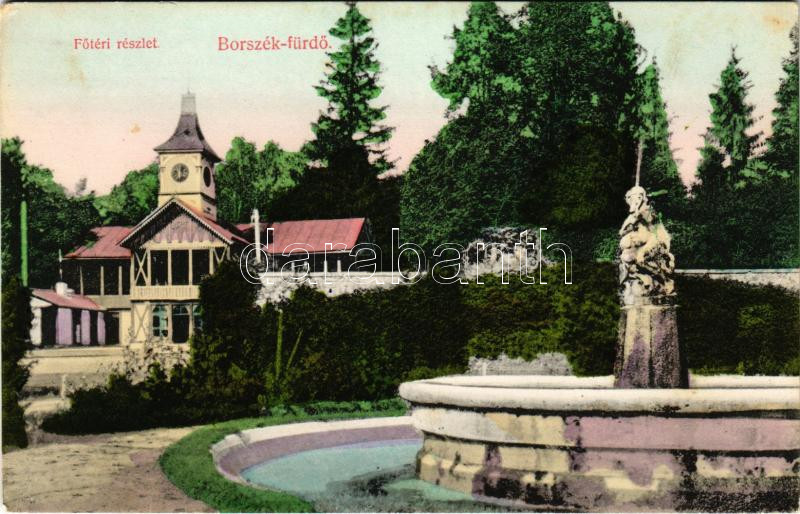 Borszék, Borsec; Főtéri részlet, szökőkút. Divald Károly műintézete 1922-1908. / main square, fountain (fl)