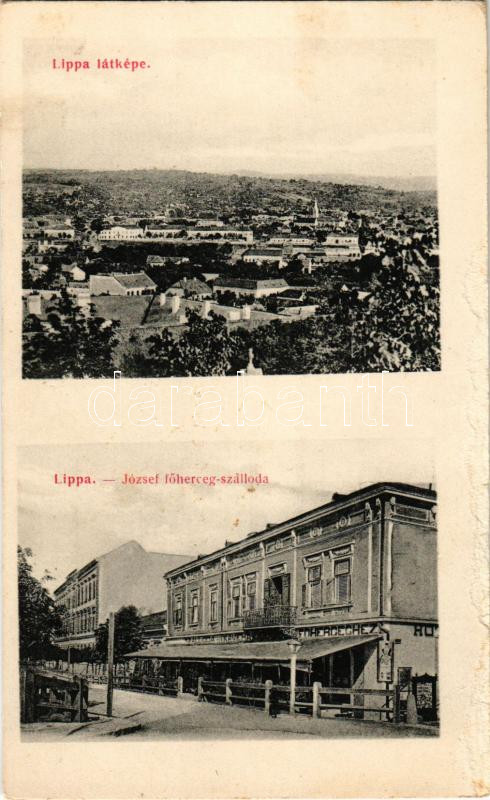 Lippa, Lipova; látkép, József főherceg szálloda és kávéház / general v... https://www.darabanth.com/en/500-Online-auction/500.0/Postcards/Transylvania~2500006/Lippa-Lipova-latkep-Jozsef-foherceg-szalloda-es-kavehaz-general-view-hotel-and-cafe-~II3409475