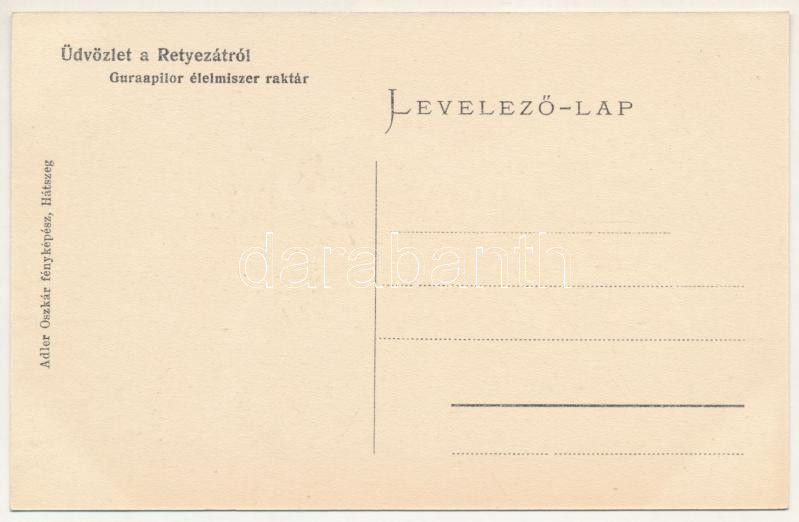 https://www.darabanth.com/en/500-Online-auction/500.0/Postcards/Transylvania~2500006/Retyezat-Retezat-Guraapilori-elelmiszer-raktar-Adler-Oszkar-fenykepesz-Hatszeg-food~II3410453