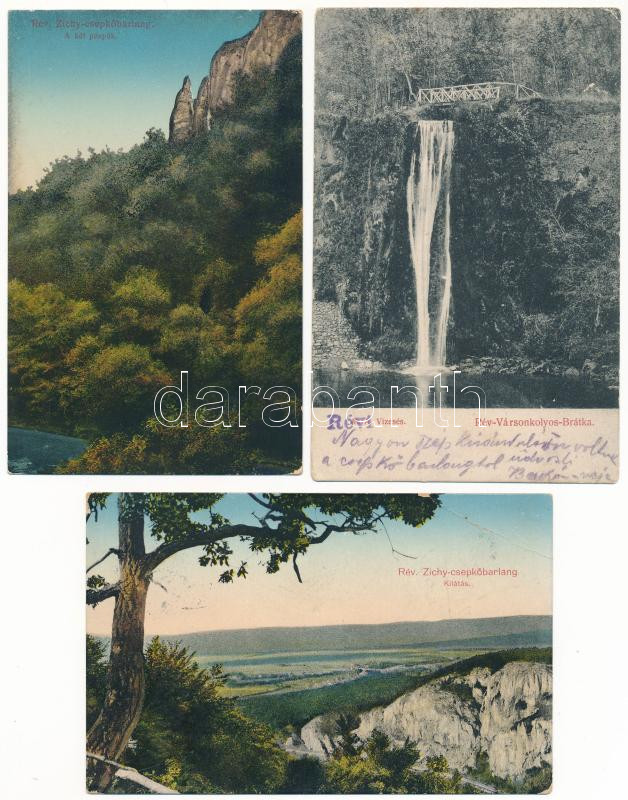 Rév, Vad, Vadu Crisului - 3 db RÉGI képeslap: Zichy-cseppkőbarlang, ví...