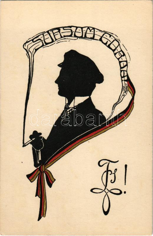 Segesvár, Schässburg, Sighisoara; Sursum corda. Schässburger Chlamydatencoetus / segesvári studentika művészlap / Transylvanian Studentica art postcard s: J. Fabini