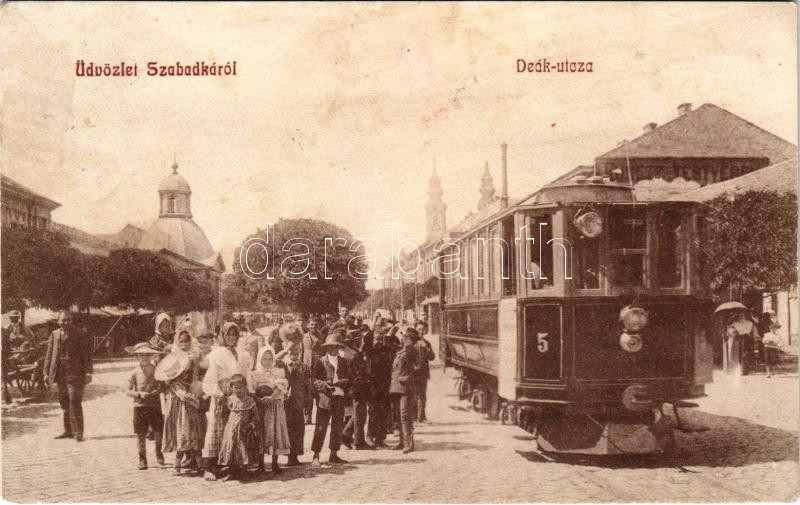 1909 Szabadka, Subotica; Deák utca, villamos / street, tram (fl)