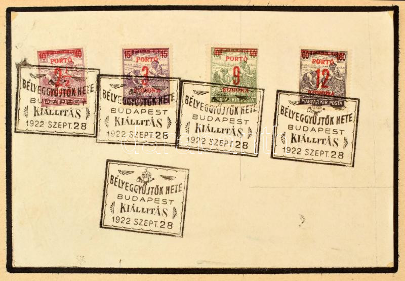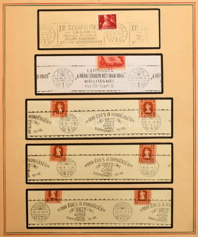 Alkalmi, propaganda, hirdető bélyegzések érdekes tétel kiállítási lapo...