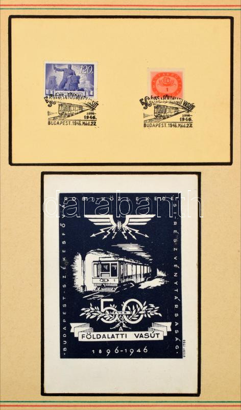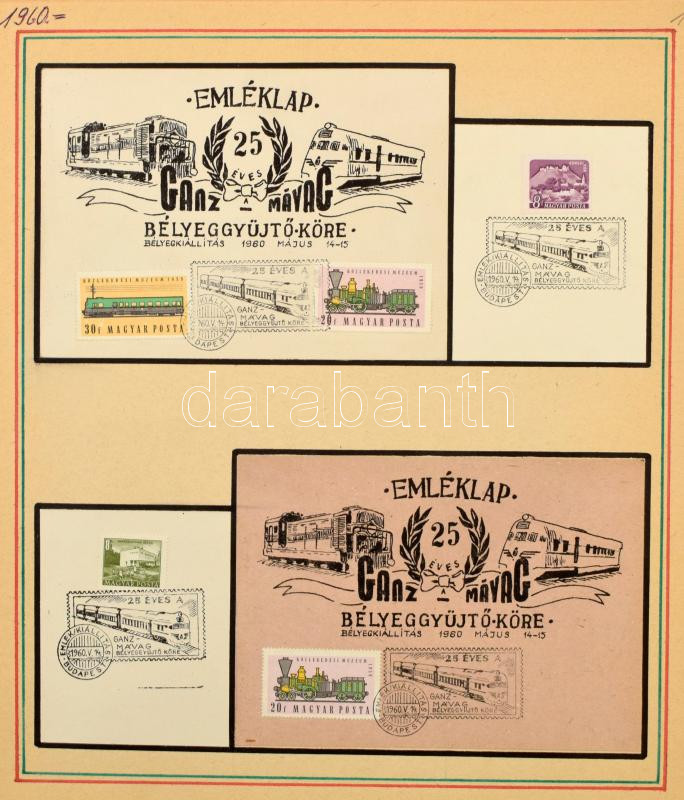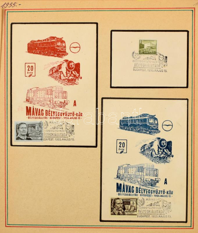 Alkalmi, propaganda, hirdető bélyegzések érdekes tétel kiállítási lapokon, közte rengeteg vasút motívum