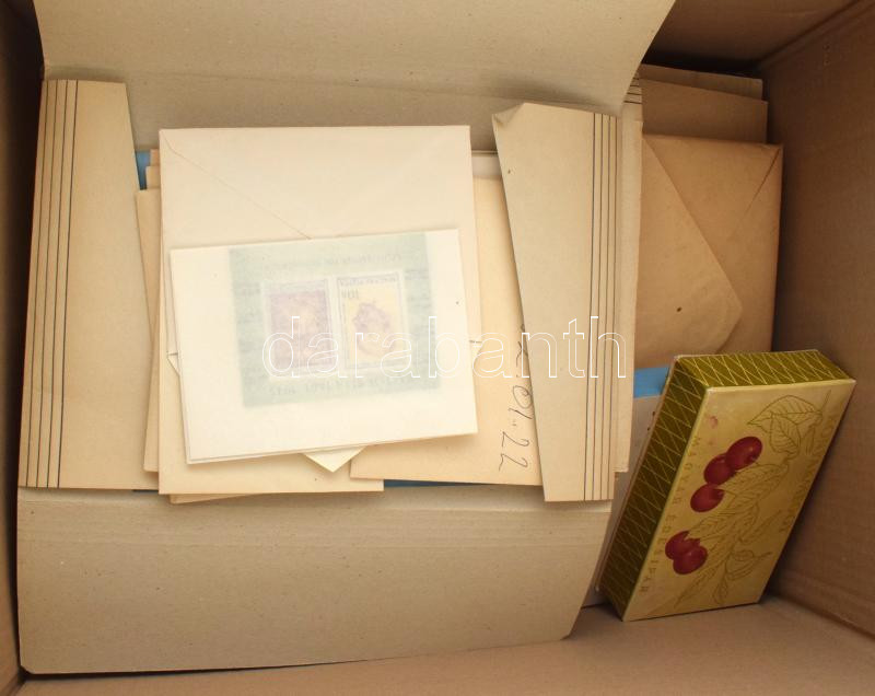 Description: Magyar gyűjtemény 2 példányban a 60-as évek végétől a 90-es évek elejéig, nagyrészt borítékokban, ahogy a bélyegeket a bélyeggyűjtő körben megkapták. Hozzá album és berakó, üres fotóalbumok, fel nem használt kellékek, nagyobb hullámkarton ládában. Érintetlen, valószínűleg jó állapotú anyag!!