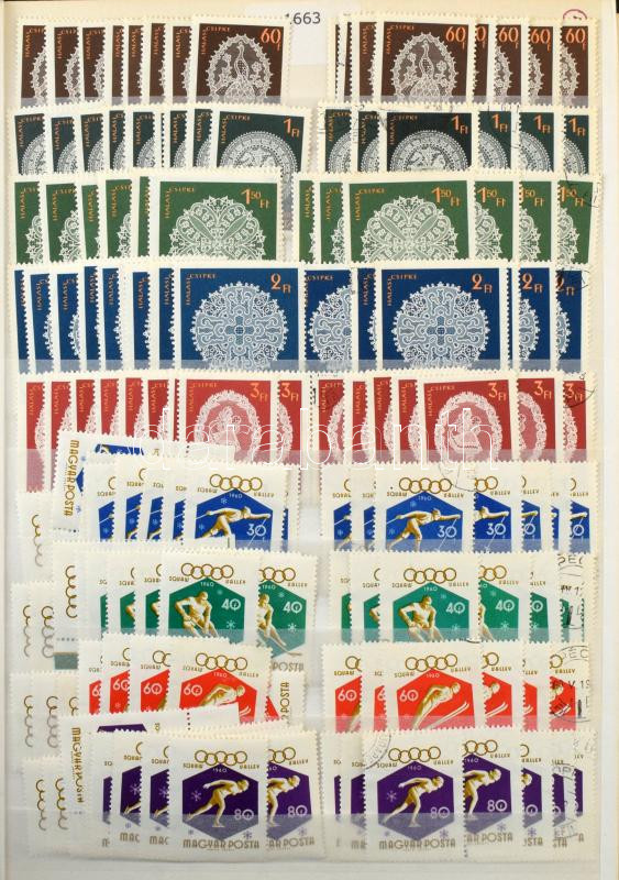1959-1992 Sok ezer bélyeget, rengeteg postatiszta és használt teljes sort tartalmazó nagy rendező külföldi e-bay kereskedői hagyatékból 4 db 30 lapos + 2 db 16 lapos A/4 berakóban. Az anyag nyomási eltérésekre teljesen átnézetlen!! Magas katalógus érték!!
