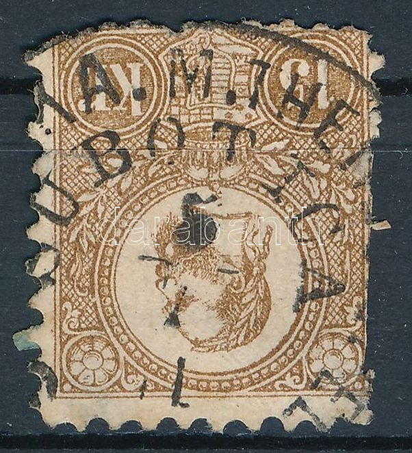 1871 Kőnyomat 15kr hibás, sérült bélyeg 3 nyelvű szabadkai bélyegzéssel