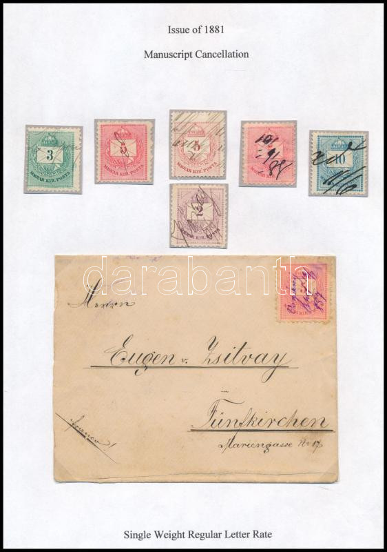 1881 Kézírásos érvénytelenítés 6 bélyegen + 1 levélen