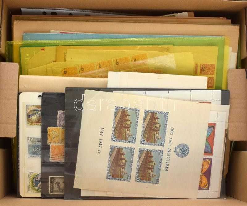 Hagyaték IKEA tároló dobozban, főleg régebbi bélyegek az egész világból (kevés magyar is) 2 db A4 berakóban, berakólapokon, borítékokban, genothermekben, bélyegcsomagokban, közte felülnyomott régi orosz ívek, 1947-es 800 éves Moszkva blokk stb. Érdekes, szerteágazó anyag! Érdemes megnézni.