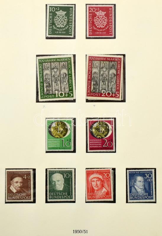 Description: NSZK 1949-1971 Néhány bélyeg híján teljes, néhány bélyeg kivételével postatiszta gyűjtemény Lindner falcmentes előnyomott albumban. Szép anyag! (Mi EUR 3.400.-)