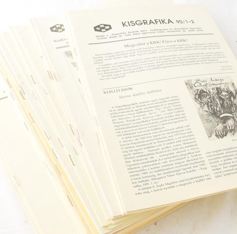 Description: Kisgrafika folyóirat 1990-1999, komplett évfolyamok (90/3 sz. hiányzik). A tételhez tartozik az 1994 és 1997. évi különszám. Kiadói papírborítóban, jó állapotban.