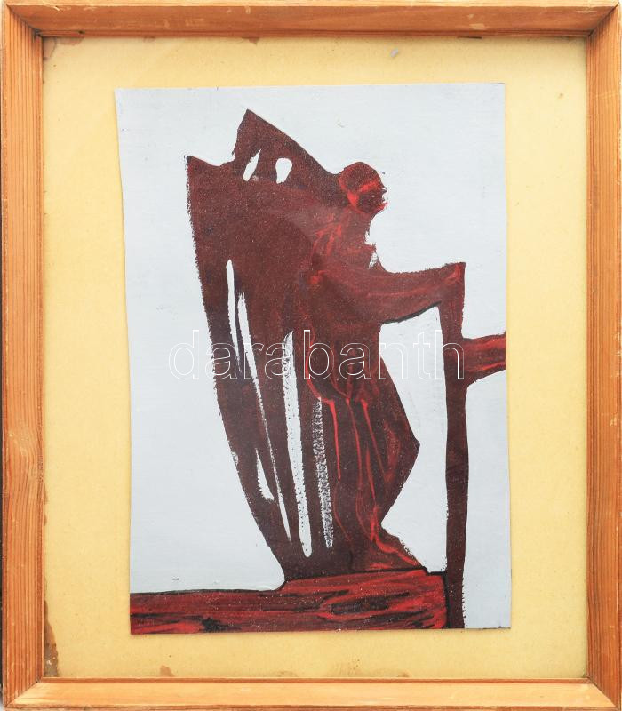 Jelzés nélkül: Angyal. Olaj, karton, üvegezett fakeretben, hátoldalán ...