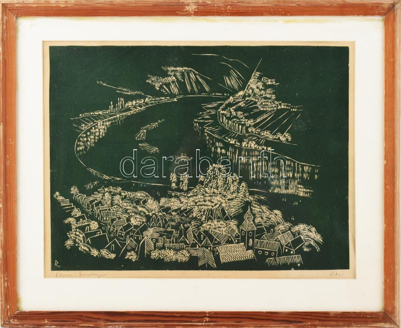 Olvashatatlan jelzéssel (Rác András?): Visegrád, Duanakanyar. Rézkarc, papír, üvegezett fakeretben, 30x40 cm, lapszéli apró foltokkal.
