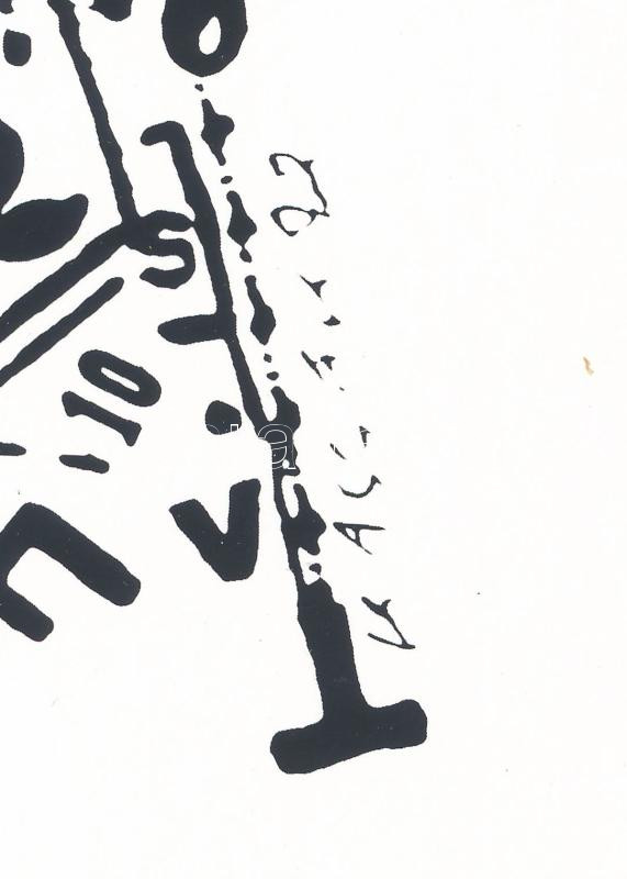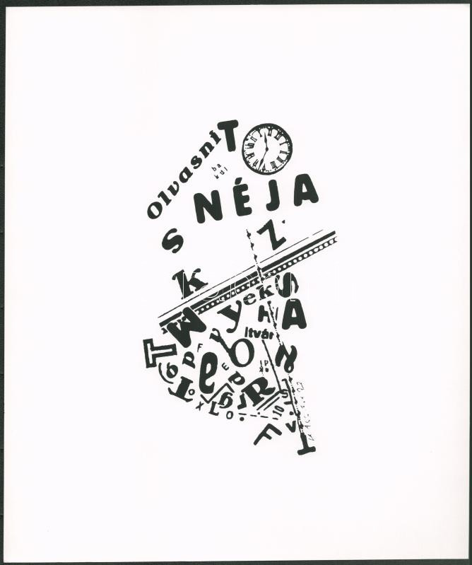 Description: Kassák Lajos (1887-1967): Dadaista kompozíció (cím nélkül). Szitanyomat, papír. Jelzett a nyomaton. Pesti Műhely kiadása, az 1981-ben megjelent Kassák 6 Typographia c. mappából. Lapméret: 35x28,5 cm