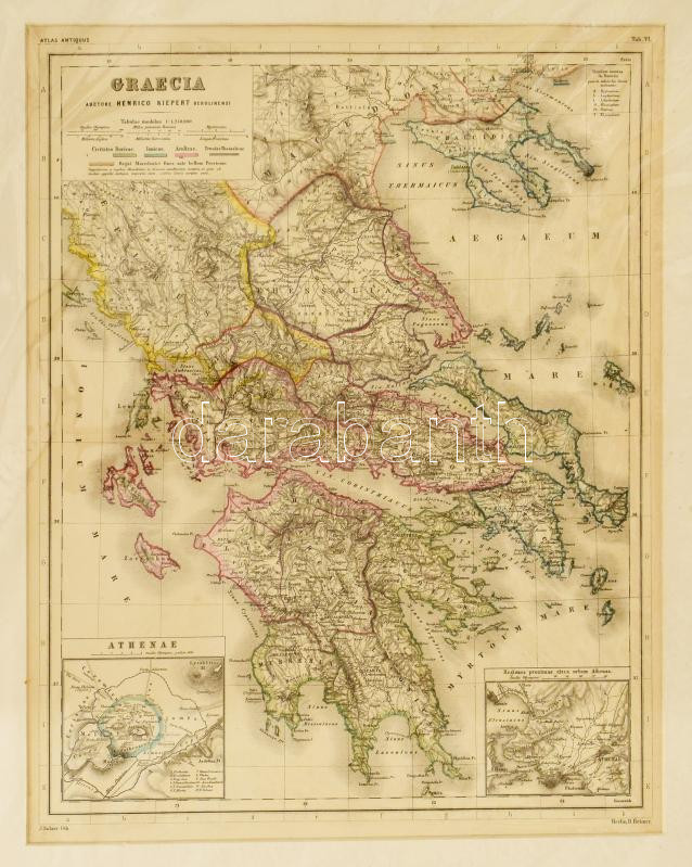 Görögország térképe. Litografált térkép az Atlas Antiqusból. Heinrich ...