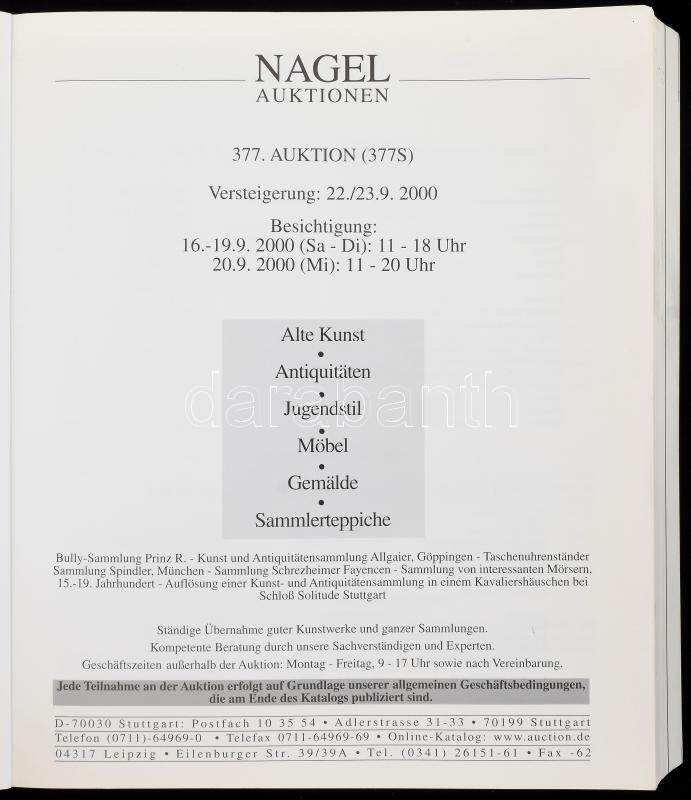 Nagel aukciós katalógus, vegyes régiségek témában, 707 oldal, 2000