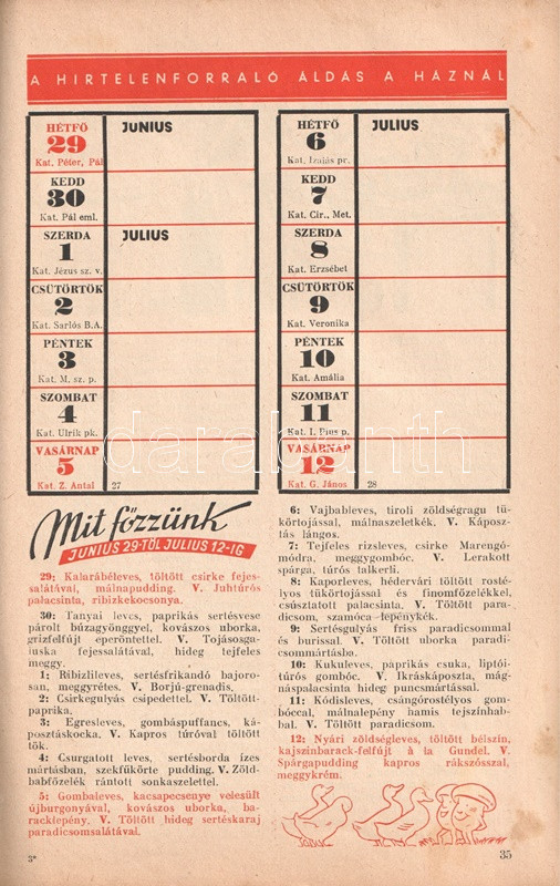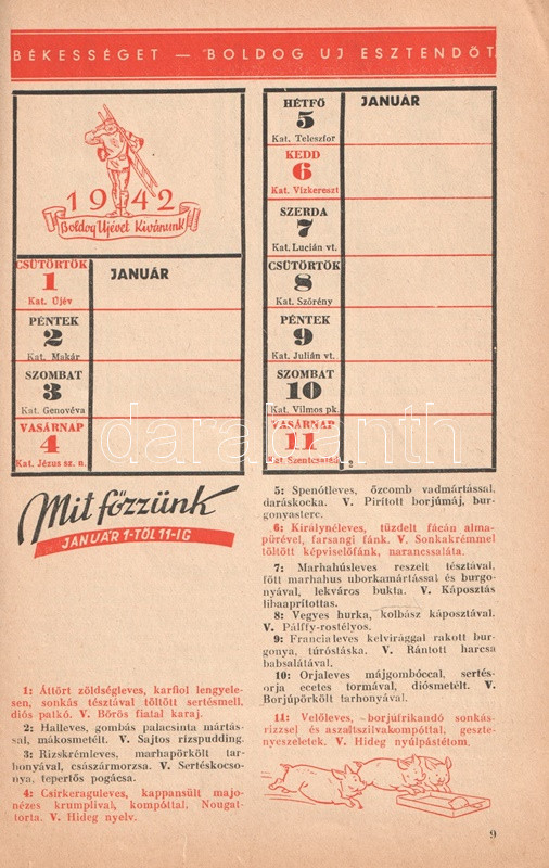 Háztartási előjegyzési naptár. Szerkeszti: Ráth Sándor. (1942).