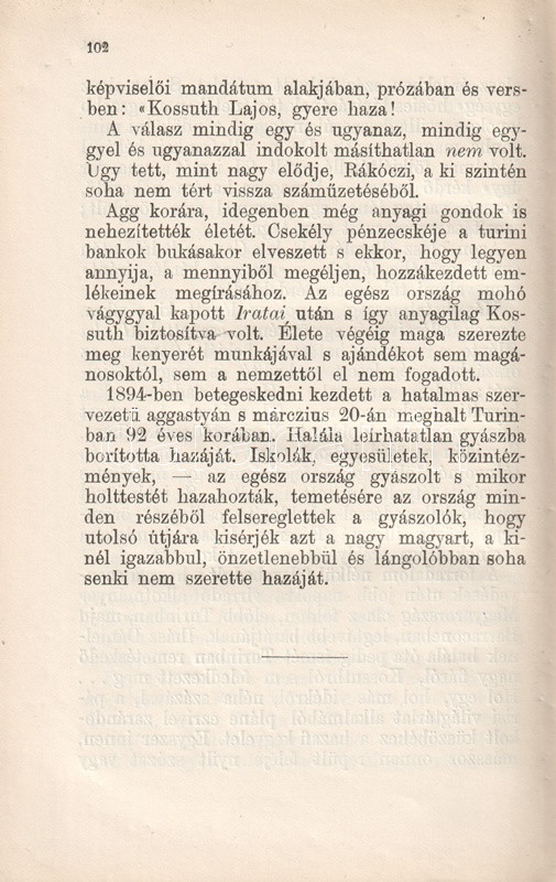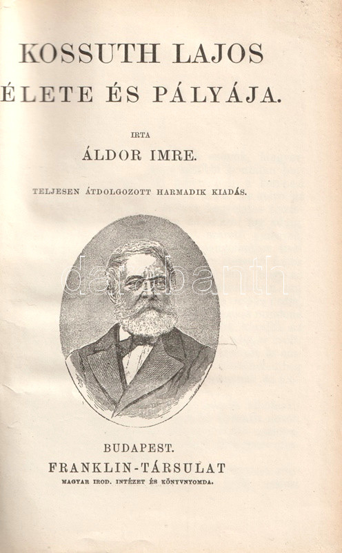 Áldor Imre (1838-1928) újságíró, szerkesztő, számos, az ifjúságnak szánt, történelmi munka írója, a hazai Kossuth-kultusz fontos ápolója. A magasztalás hangján írt Kossuth-életrajz először 1878-ban jelent meg, példányunk a Kossuth Lajos halála után megjelent, teljesen átdolgozott harmadik kiadásból való.