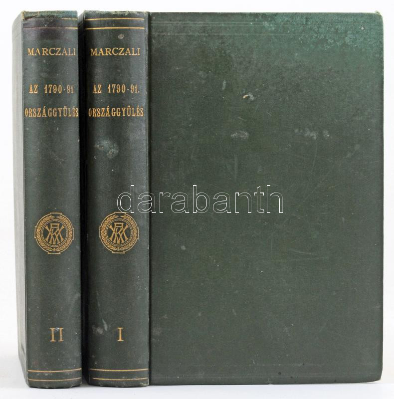 Marczali Henrik: Az 1790/1-diki országgyűlés. I-II. köt. A MTA Könyvkiadó Vállalata. Új folyam, LXX-LXXI. köt. 1905-1907. Cyclus. Bp., 1907, MTA (Hornyánszky-ny.), VII+(1)+393+(3) p.; 2 sztl. lev.+ 382+(2) p. Kiadói aranyozott egészvászon-kötés, Müller-kötés, kissé foltos borítóval, helyenként kissé foltos lapokkal, tulajdonosi névbejegyzéssel.