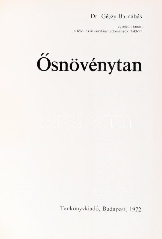 Géczy Barnabás: Ősnövénytan. Bp.,1972, Tankönyvkiadó, 356+2 p.+9 (kéto...