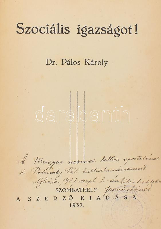 Pálos Károly: Szociális igazságot! Szombathely, 1937, Szerzői, 143 p. ... https://www.darabanth.com/en/502-Online-auction/502.0/Books/Books-Natural-sciences-Medicine~2500009/Palos-Karoly-Szocialis-igazsagot-Szombathely-1937-Szerzoi-143-p-Kiadoi-papirkotes-dr~II3414474