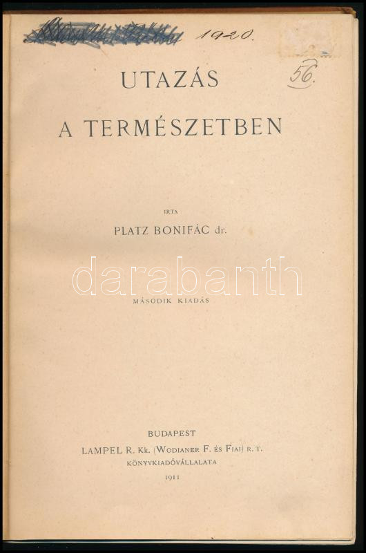 Platz Bonifác: Utazás a természetben. Bp., 1911, Lampel R., VI+(2)+186... https://www.darabanth.com/en/502-Online-auction/502.0/Books/Books-Natural-sciences-Medicine~2500009/Platz-Bonifac-Utazas-a-termeszetben-Bp-1911-Lampel-R-VIplus2plus186-p-Masodik-kiadas~II3418029