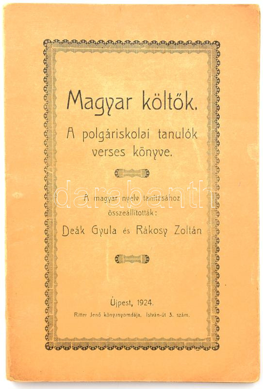 https://www.darabanth.com/en/502-Online-auction/502.0/Books/Books-Other-rarities~2500020/Deak-Gyula-Rakosy-Zoltan-Magyar-koltok-A-polgariskolai-tanulok-verses-konyve-Ujpest-1924-~II3412266
