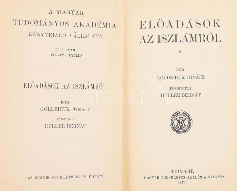 Goldziher Ignác: Előadások az iszlámról. Ford.: Heller Bernát. Bp., 19... https://www.darabanth.com/en/502-Online-auction/502.0/Books/Books-Religion~2500015/Goldziher-Ignac-Eloadasok-az-iszlamrol-Ford-Heller-Bernat-Bp-1912-MTA-Hornyanszky-ny-~II3414583