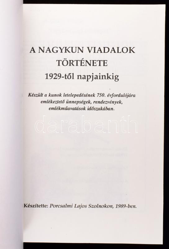 A Nagykun Viadalok története 1929-től napjainkig - készült a kunok 750... https://www.darabanth.com/en/502-Online-auction/502.0/Books/Books-Travelling-Local-History~2500001/A-Nagykun-Viadalok-tortenete-1929-tol-napjainkig-keszult-a-kunok-750-evfordulojara-Szolnok-~II3418349