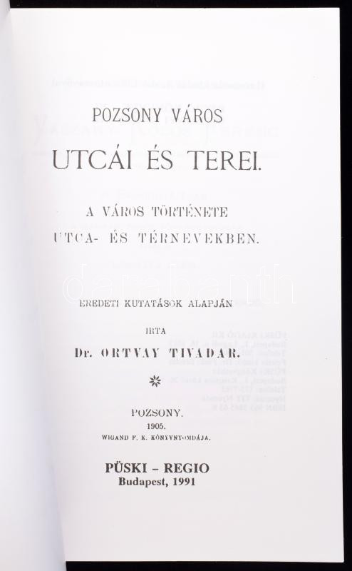 Ortvay Tivadar: Pozsony város utcái és terei. A város története utca- ... https://www.darabanth.com/en/502-Online-auction/502.0/Books/Books-Travelling-Local-History~2500001/Ortvay-Tivadar-Pozsony-varos-utcai-es-terei-A-varos-tortenete-utca-es-ternevekben-Szabo-Lilla~II3418601