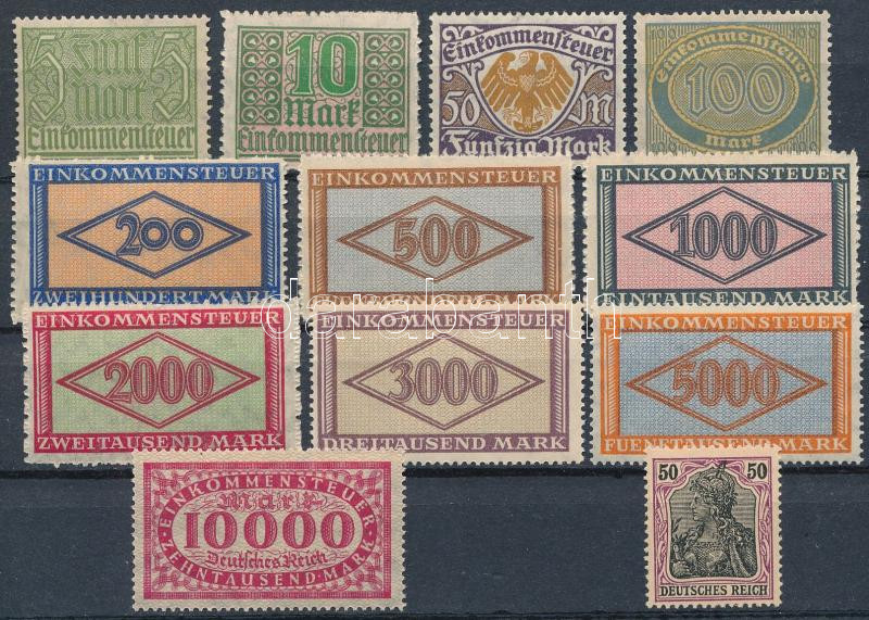 11 klf német jövedelemadó-bélyeg + Germánia-fejes bélyeg